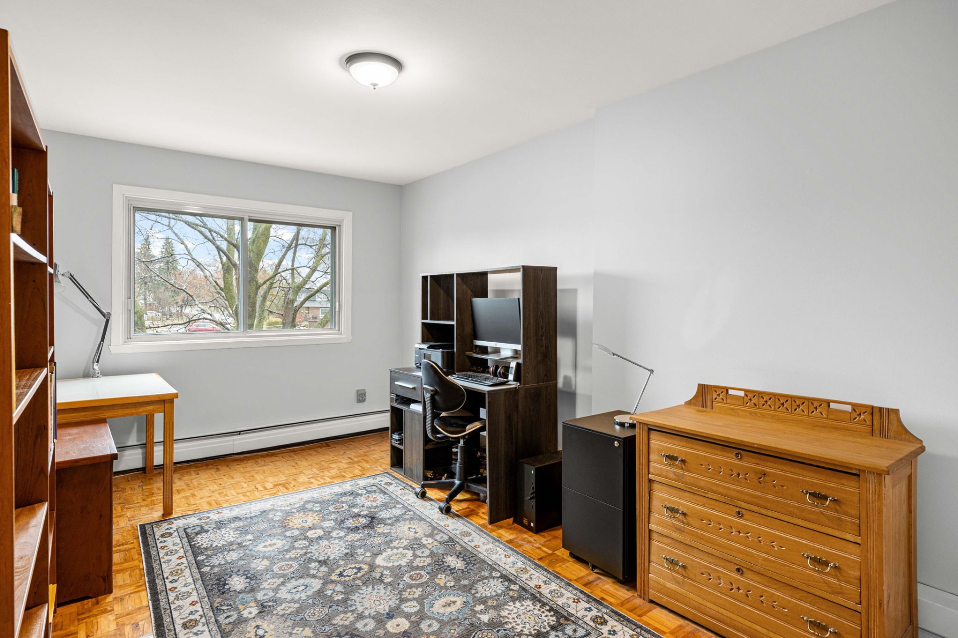 Le sous-sol aménagé comprend une chambre polyvalente