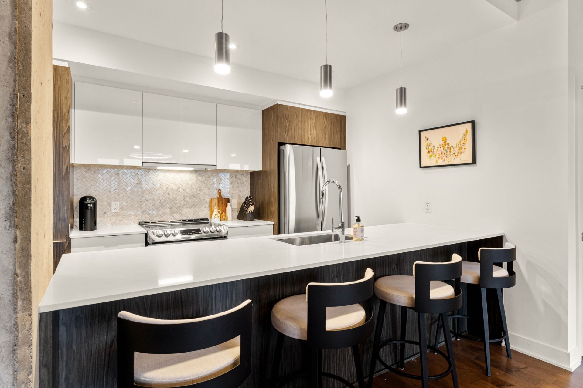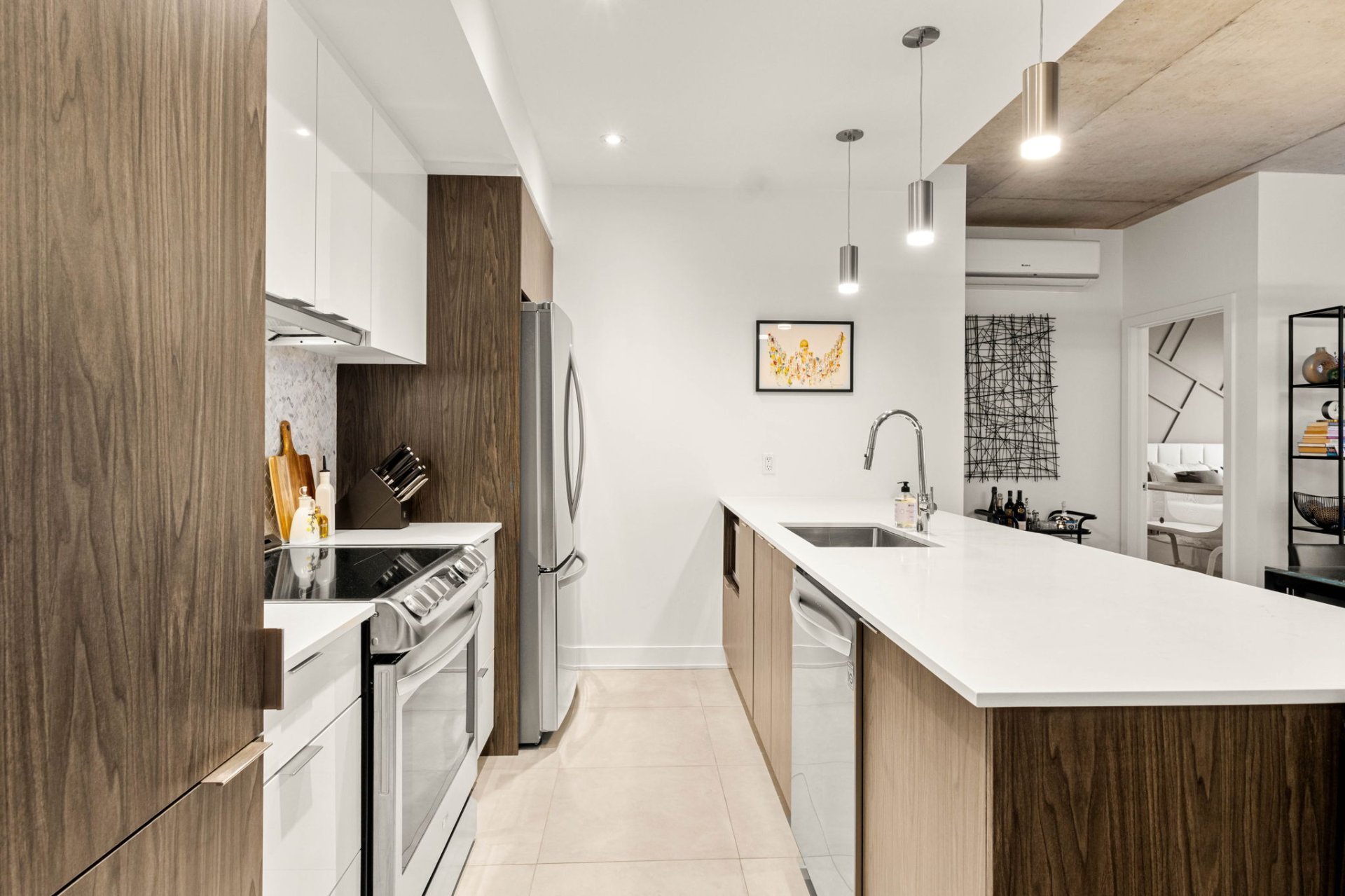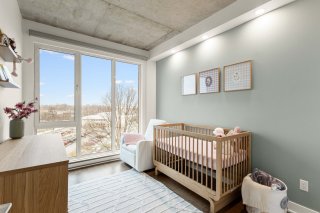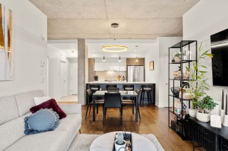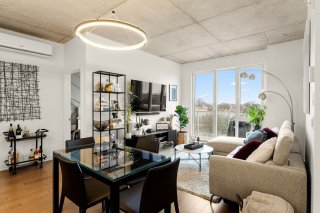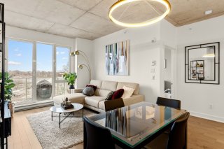 Discover modern luxury in this exceptional 2-bedroom, 2-bathroom condo in the highly sought-after Le Quatrième development in Dorval South East. Perfectly situated in a peaceful area just steps from Lac St-Louis, the bike path, and a full range of commercial and municipal services. You'll also be minutes from elementary and high schools, parks, public transit, the Dorval train station, the REM, and Highway 20.