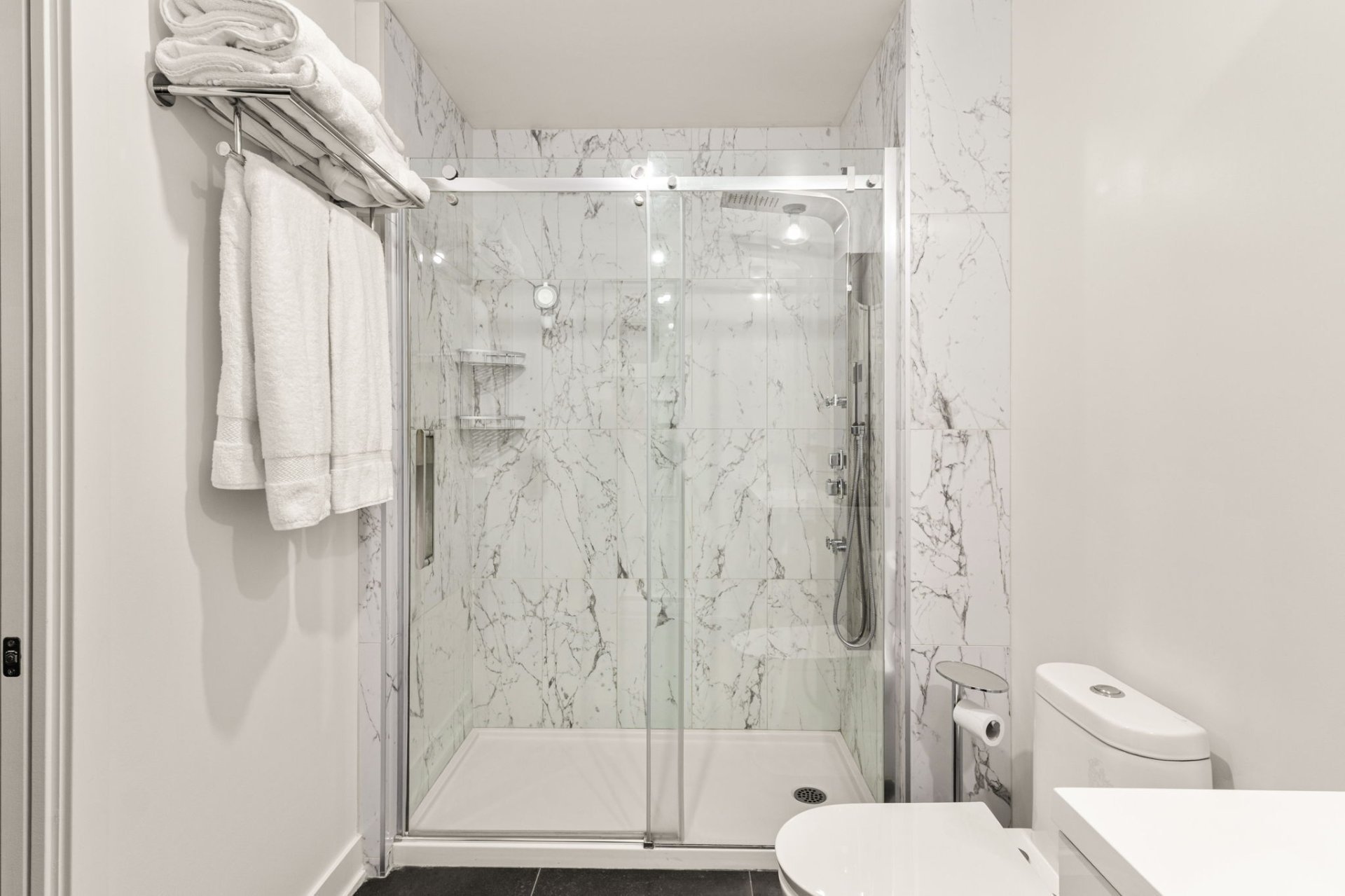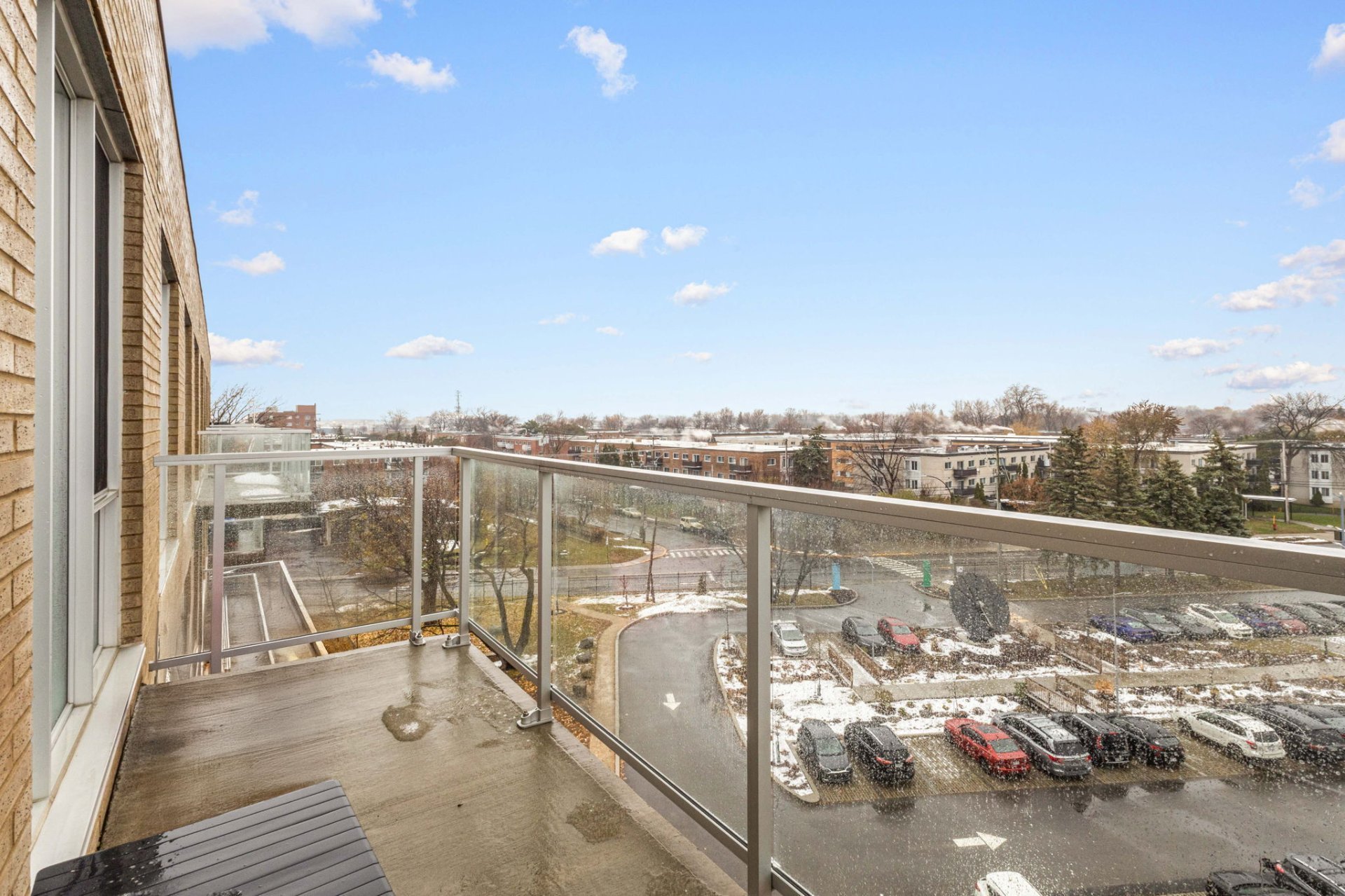 open-concept living area, a spacious balcony, indoor heated