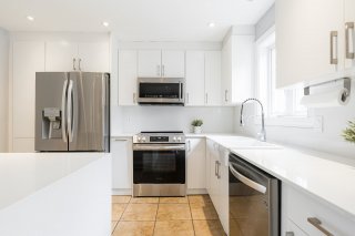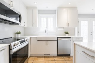 Light fixtures, curtains and rods, blinds, dishwasher, refrigerator, stove
