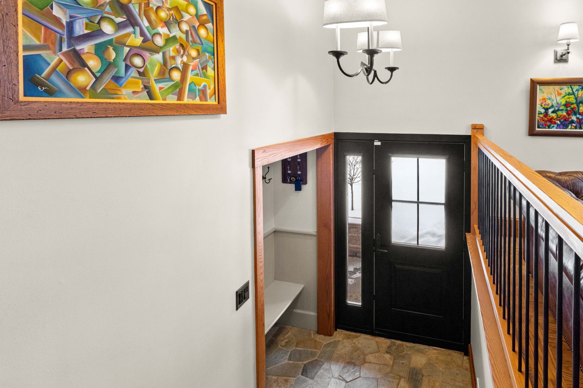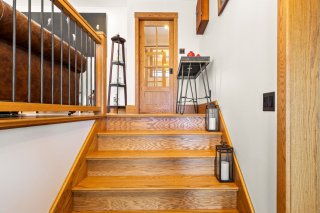 Step into a welcoming open foyer that leads up to a