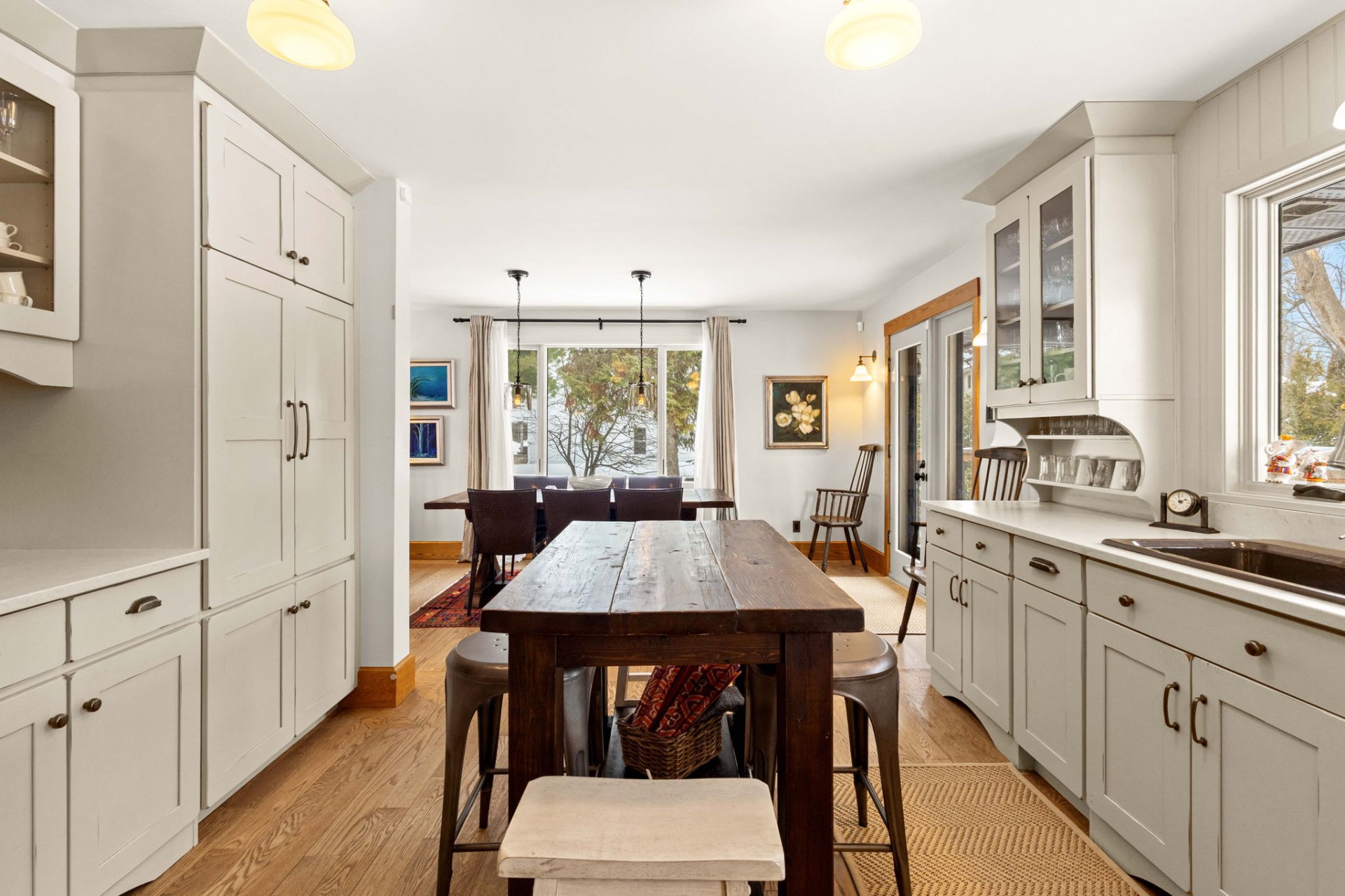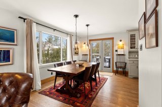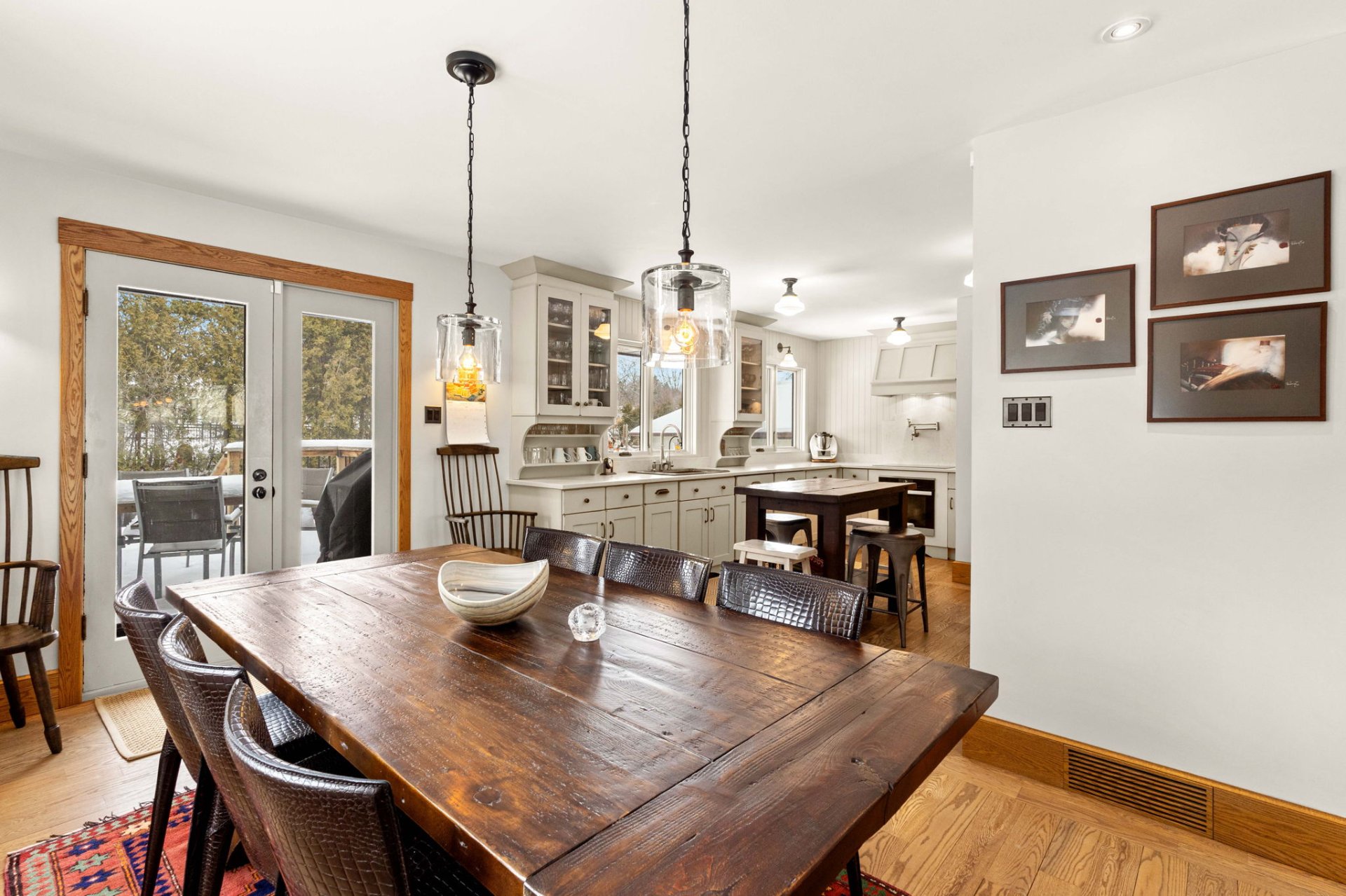 dining room opens through French doors to a large wooden