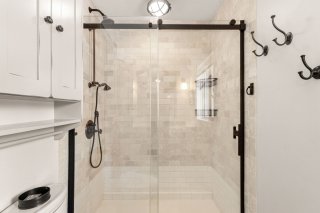 family bathroom complete with a glass shower.