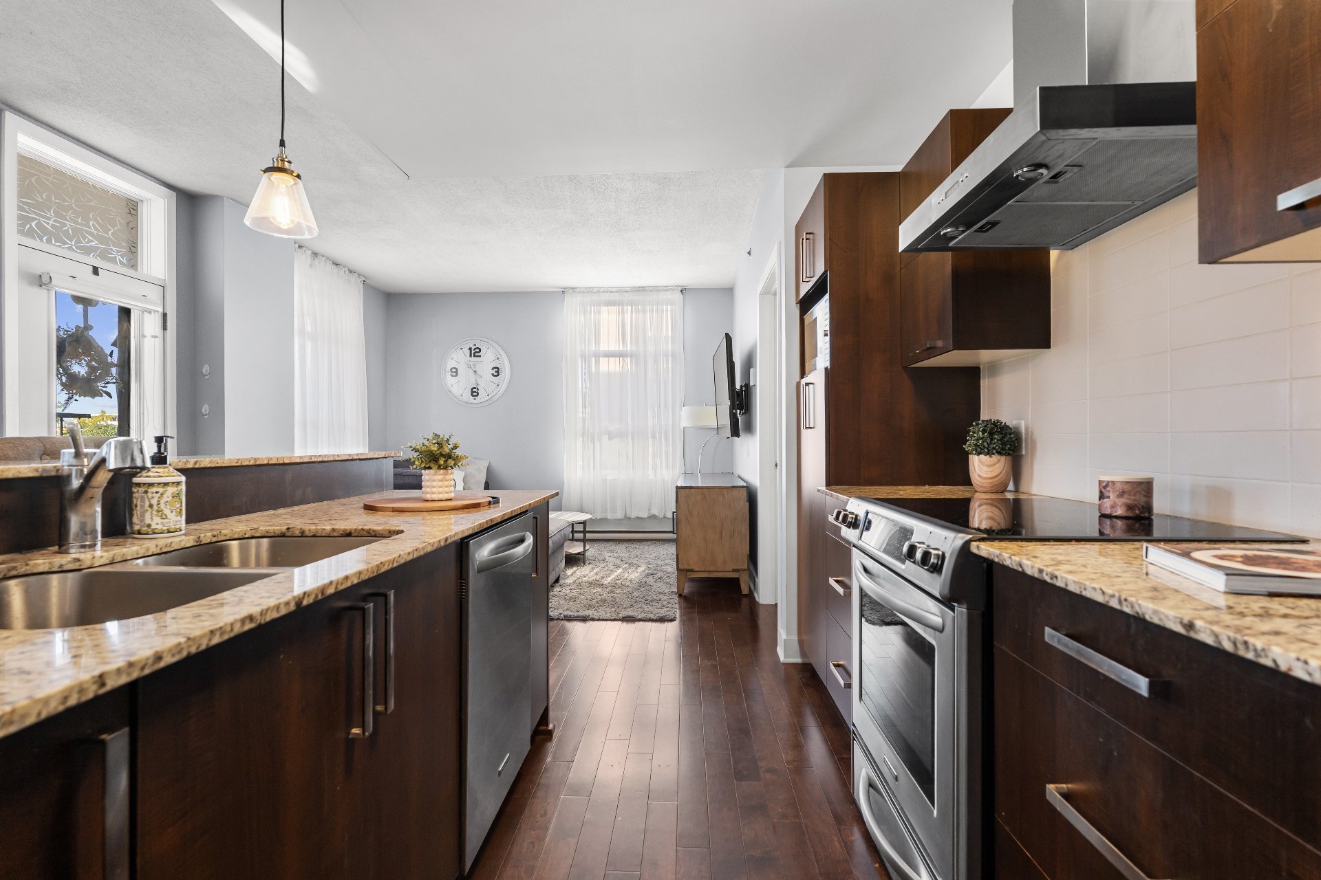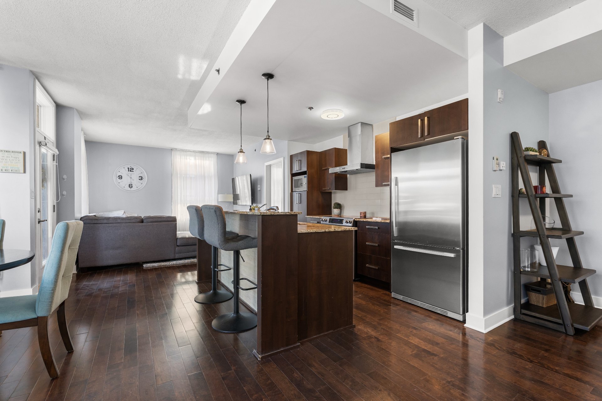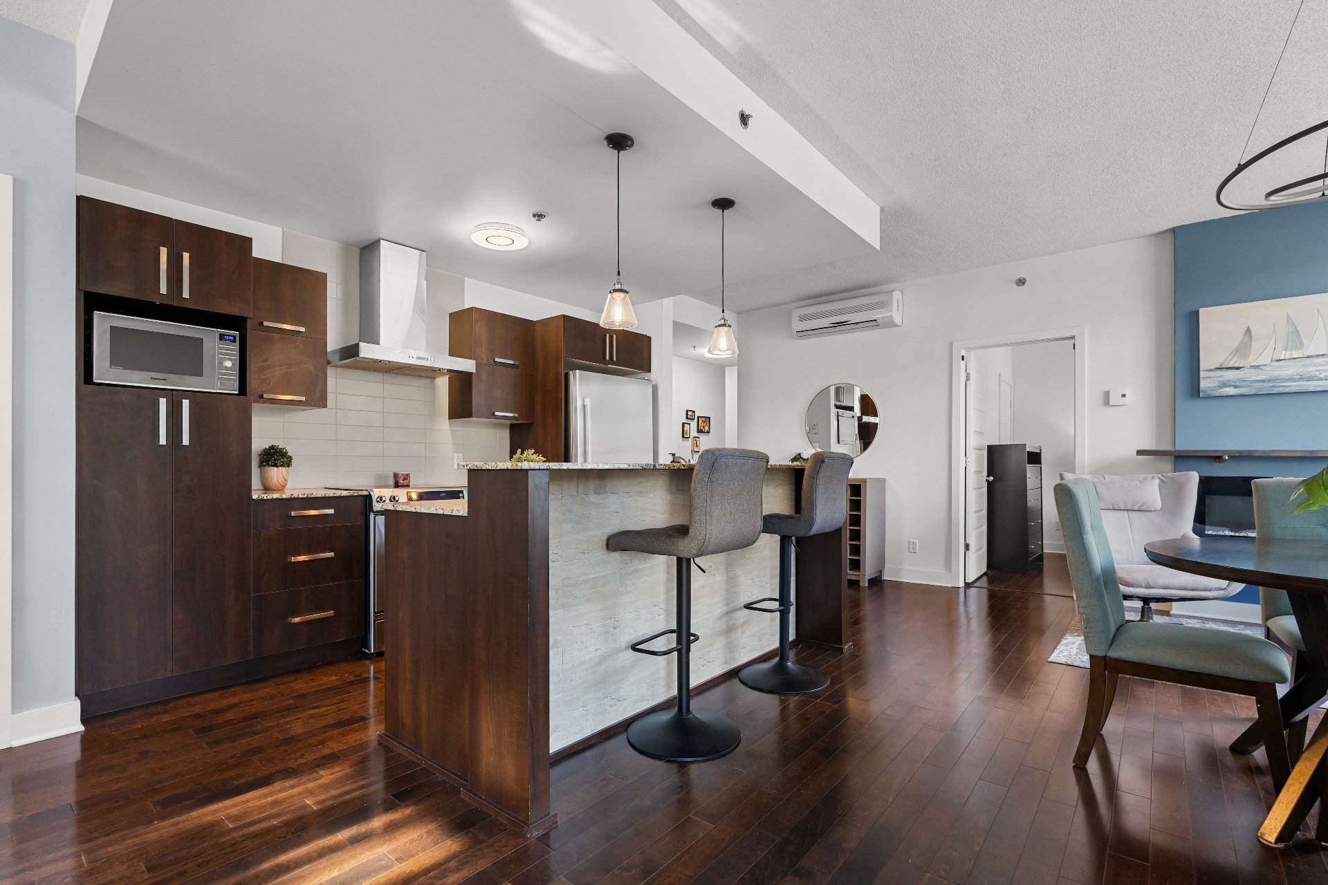 Welcome to this 2-bedroom, 2-bathroom executive corner unit, ideally situated in the sought-after Le Onze de la Gare project in Vaudreuil. Located just steps from Les Avenues Vaudreuil and a wide range of amenities, this upscale condo offers the perfect blend of luxury, comfort, and convenience.