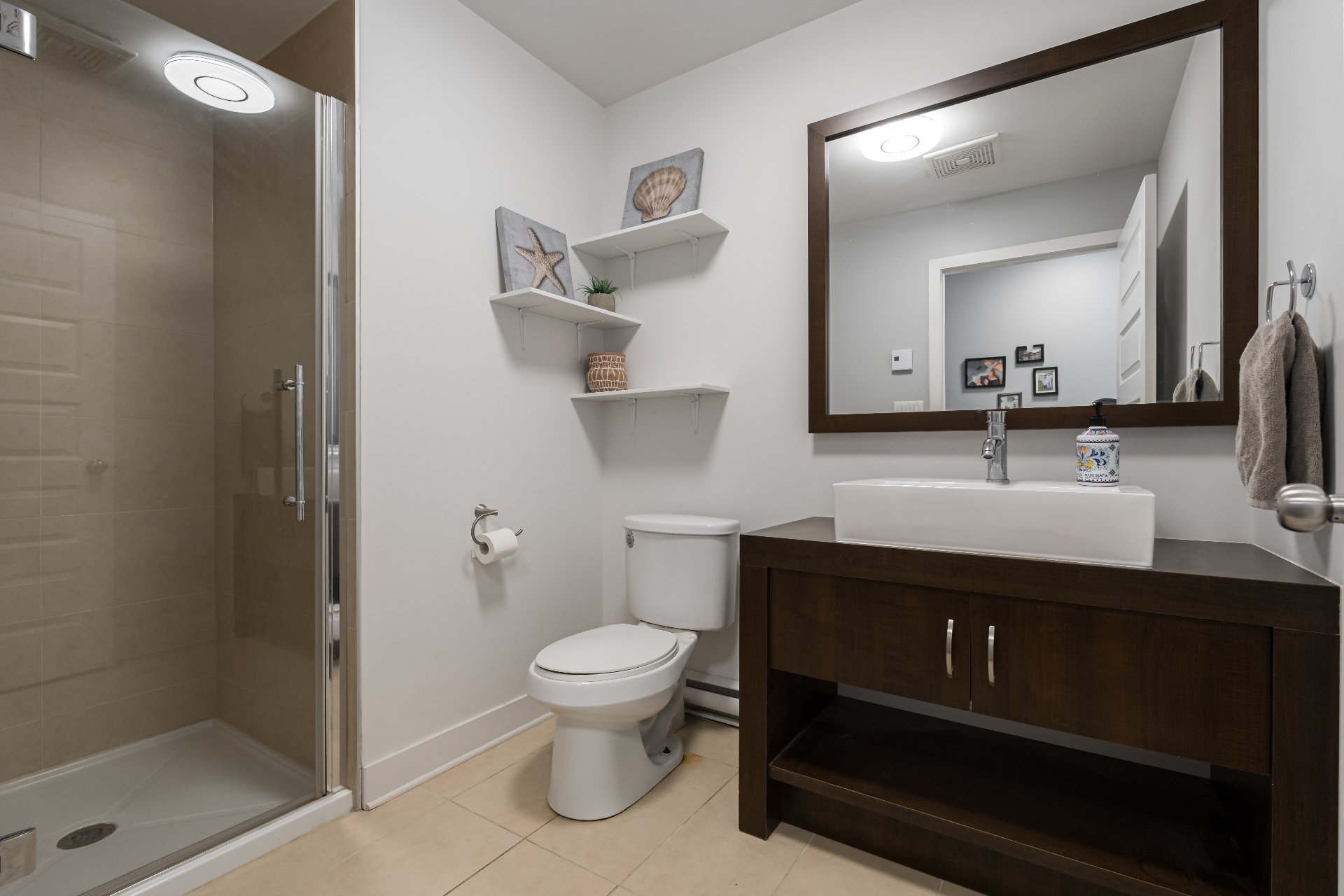 bedroom and a second full bathroom with glass shower offer