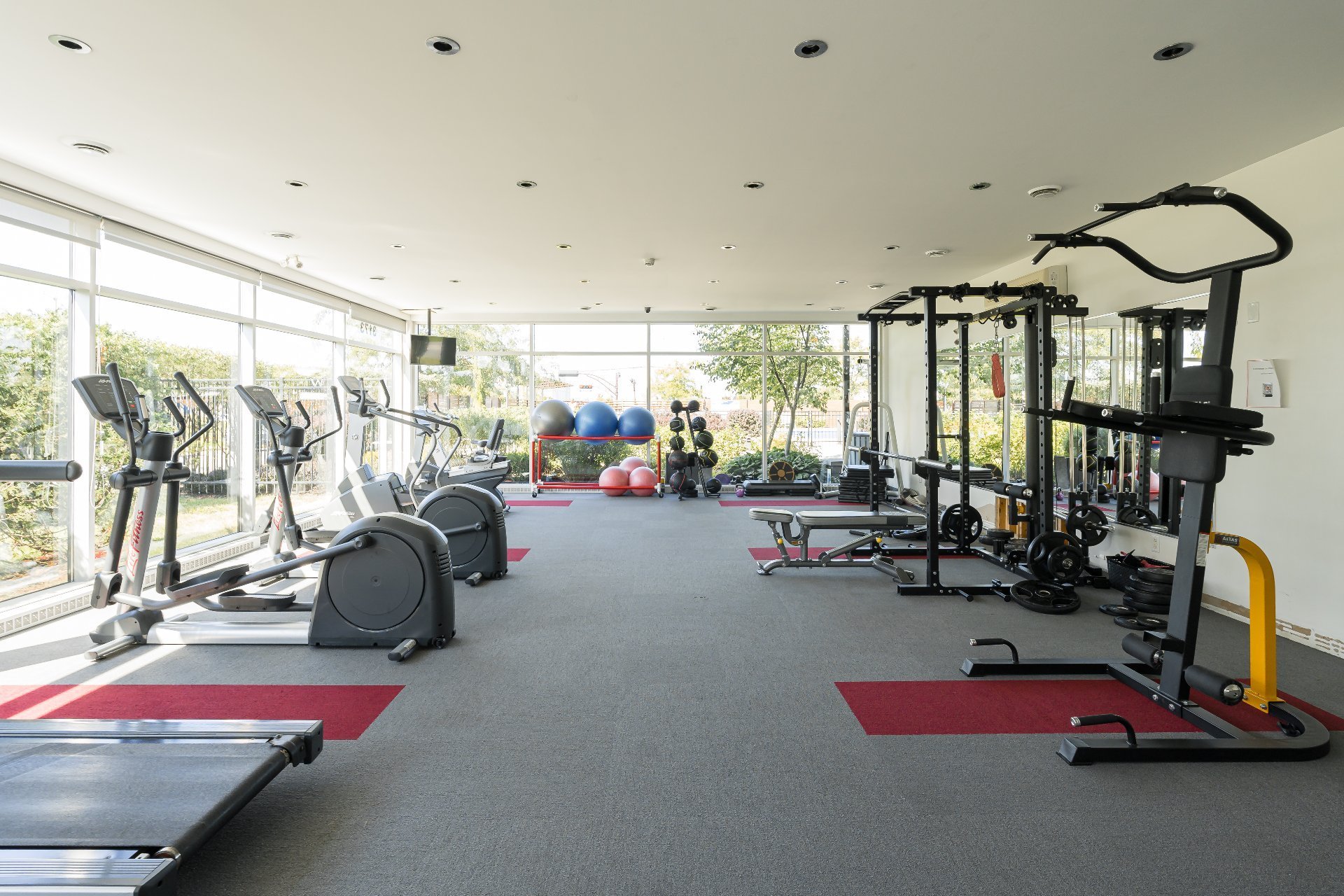 gym and a spacious recreational room, both conveniently